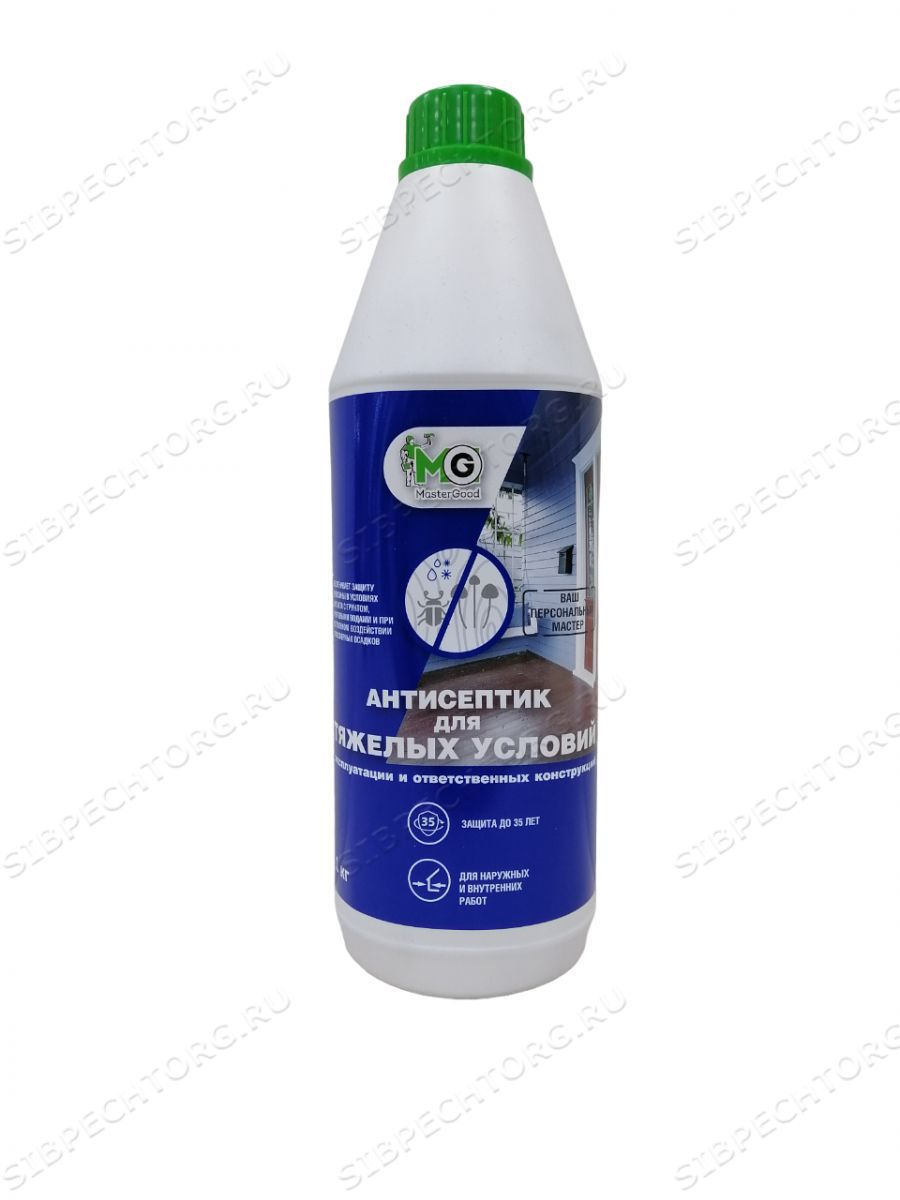 Антисептик Master Good предназначен для тяжелых условий эксплуатации, разработан для древесных изделий, сохраняет их свойства до 35 лет. Средство применяется отделки внутри и снаружи помещений. Им обрабатываются жилые и нежилые сооружения из деревянных плит, срубов. Вещество применяется также для обрешеток, причалов, бревен, подвергающихся биоразрушениям. Антисептик разработан для сложных условий работы, непогоды, механической нагрузки. Он защищает древесный профиль от гниения и плесени. При окрашивании древесины в цвет фисташки средство не повреждает поверхность.