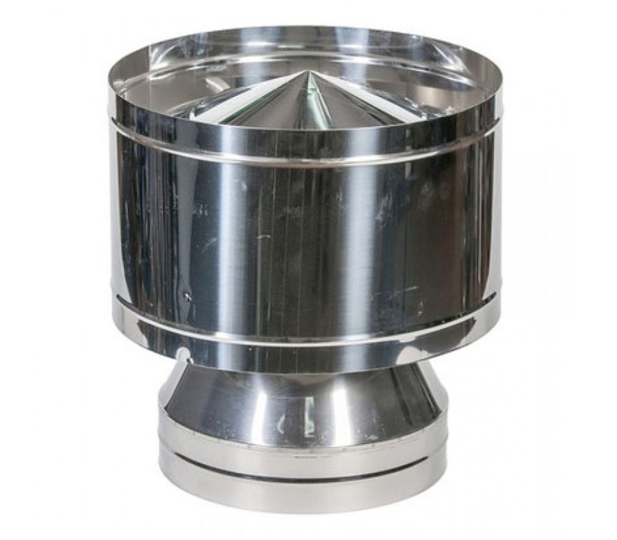 Дефлектор устанавливается на верхушку дымохода и предназначен для повышения и стабилизации тяги в дымоходе. Дефлекторы также защищают трубу дымохода от попадания атмосферных осадков и сильного бокового ветра.