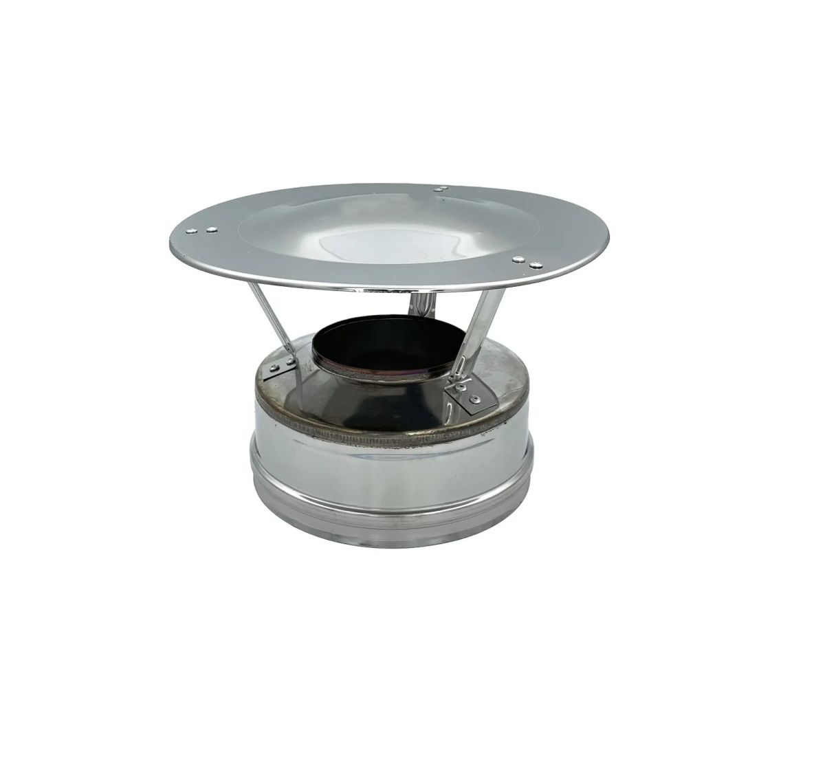 Наружная завершающая деталь дымоходного канала, которая предотвращает попадание влаги и атмосферных осадков внутрь дымохода. При установке на трубу-сэндвич элемент защищает теплоизоляционный слой от размокания и деформации.