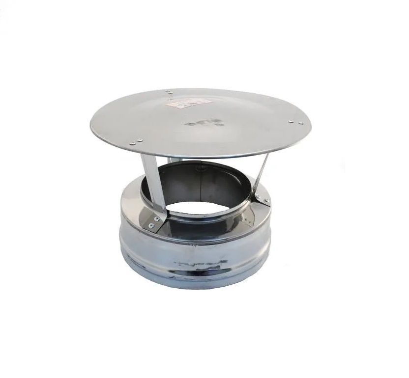 Наружная завершающая деталь дымоходного канала, которая предотвращает попадание влаги и атмосферных осадков внутрь дымохода. При установке на трубу-сэндвич элемент защищает теплоизоляционный слой от размокания и деформации.