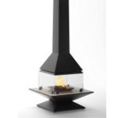 Четырехсторонний камин из стекла подвесного типа. Камин имеет островное расположение - камин остров, может играть роль разграничителя большого открытого пространства на функциональные зоны. Эта модель выглядит очень легко и невесомо благодаря сквозному обзору.