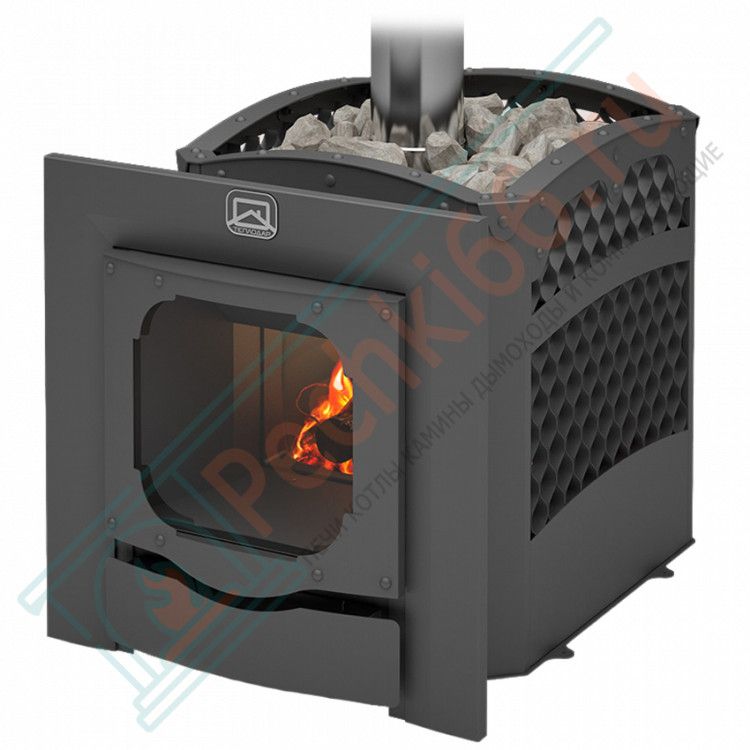 Классическая внешняя каменка с легкостью вместит 60 кг камней.