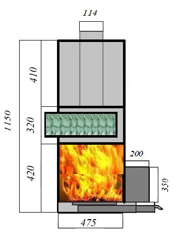 Объем каменки внутренней 18 литров. Предназначен для отопления помещения до 20 м3.