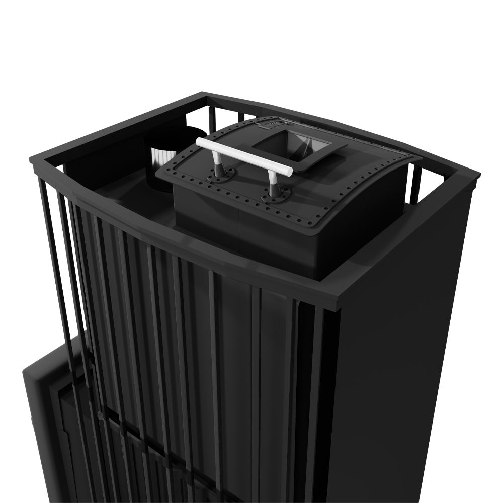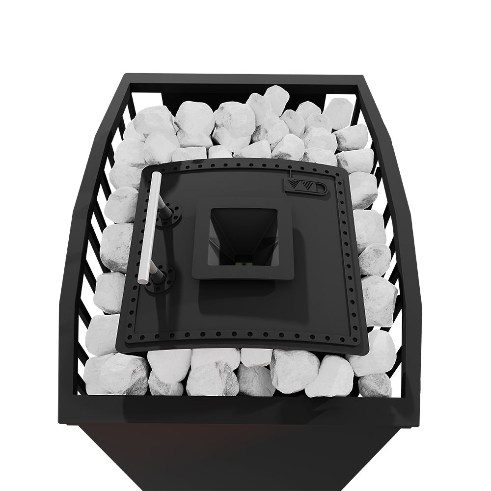 закрытая каменка из нержавеющей стали AISI439, вмещающая до 100 кг камней для парообразования, обеспечивает их максимальный прогрев, и, как следствие – легкий мелкодисперсный пар;