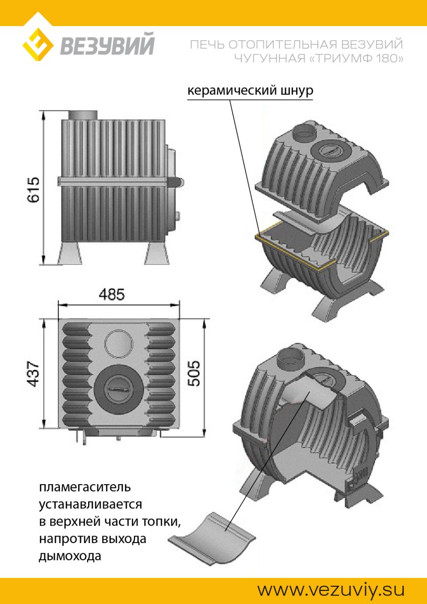 Топка состоит из двух чугунных элементов толщиной не менее 12 мм.
