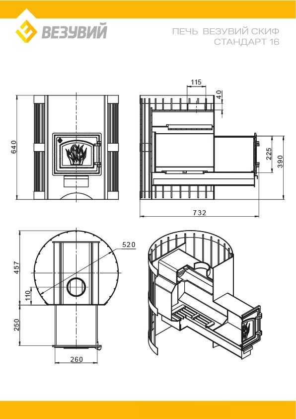 Печь ВЕЗУВИЙ Скиф Стандарт 16 (ДТ-3С)