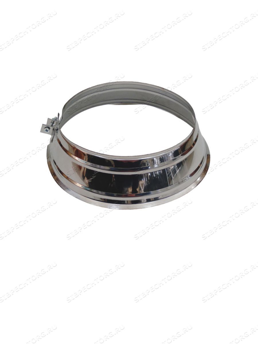 Вспомогательный (фасонный) элемент дымоходной системы. Помимо декоративной функции, используется в качестве завершающего элемента для защиты от попадания осадков в зазор между трубой дымохода и конусом кровельного элемента. Не имеет сварного шва, края стягиваются при помощи болтов гаек.